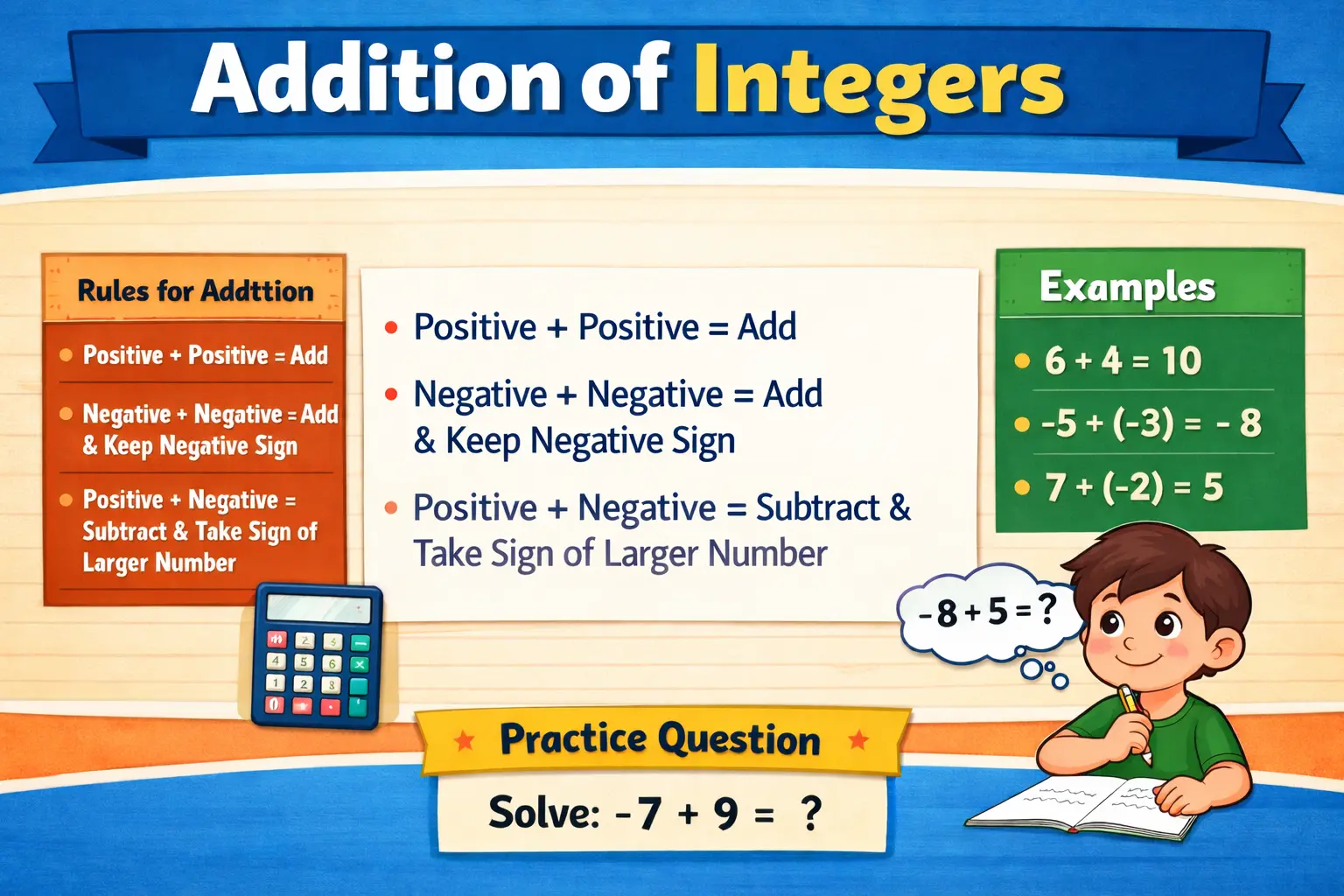 In this detailed guide, you will learn what integers are, the rules for adding them, examples, real-life applications, and practice questions to strengthen your understanding.