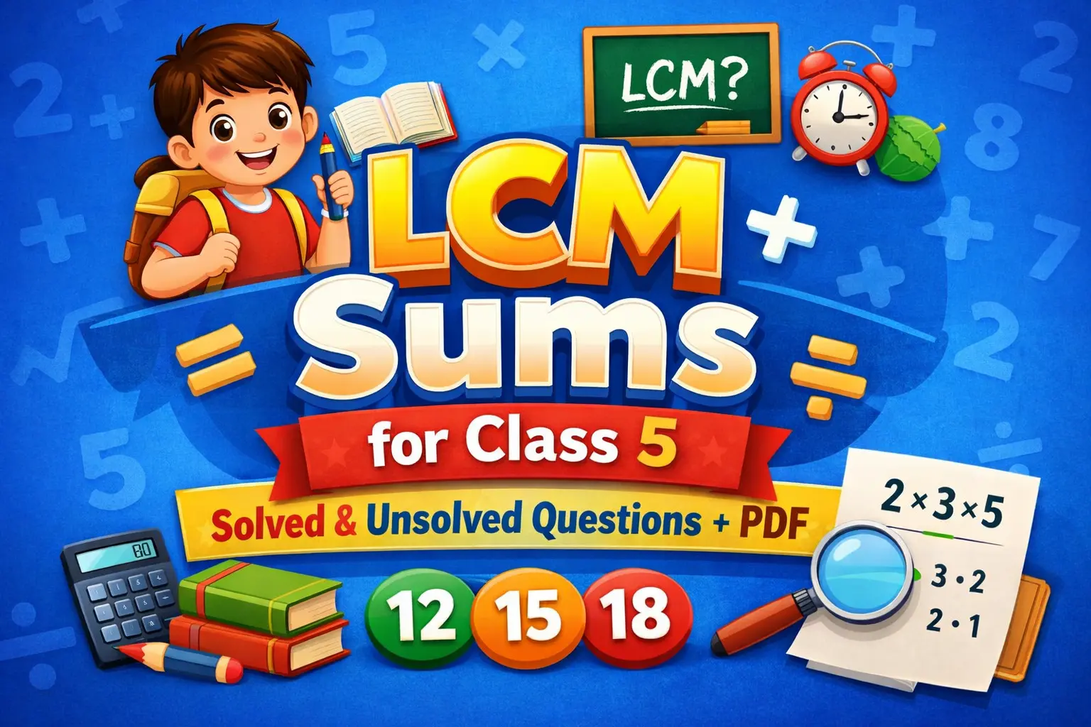 LCM (Least Common Multiple) is the smallest number divisible by two or more numbers. In this post, Class 5 students will find easy LCM sums with step-by-step solutions, word problems, unsolved exercises, and answers to improve their understanding and exam preparation.